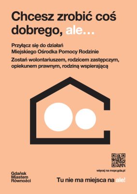W Gdańsku nie brakuje ludzi, którzy chcą i mogą pomagać. Osób wrażliwych na potrzeby drugiego człowieka, odpowiedzialnych, aktywnych, które są otwarte na inicjatywy. Zwłaszcza do tych mieszkanek i mieszkańców skierowana jest kampania informacyjna, społeczna pt. „Chcesz zrobić coś dobrego? Przyłącz się do działań Miejskiego Ośrodka Pomocy Rodzinie”, wpisująca się w Gdańsk Miastem Równości.