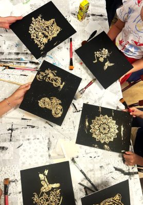 Warto się było troszkę pobrudzić, żeby na koniec wyczarować „Złote obrazy – malowane blaskiem”. Pod takim tytułem odbyły się w środę, 23 lipca 2025 r. w Miejskim Ośrodku Pomocy Rodzinie w Gdańsku artystyczne warsztaty dla dzieci w wieku 10 – 15 lat. Uczestnicy zajęć bawili się znakomicie, tworząc obrazy z użyciem farby i płatków o odcieniu złota. Z precyzją i twórczą inwencją. To był aktywny, miły czas spędzony wspólnie z rówieśnikami.